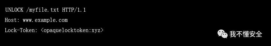 使用 UNLOCK 方法时,客户端向服务器发送 UNLOCK 请求,并在请求中包含锁定标识符 (lock token)