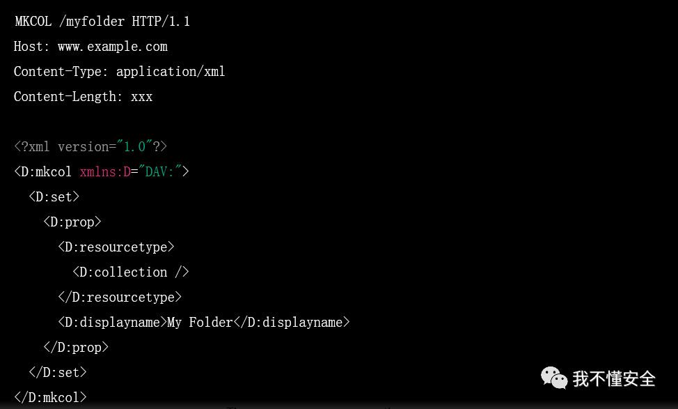 使用 MKCOL 方法时,客户端向服务器发送 MKCOL 请求,并在请求主体中包含所需的资源集合信息