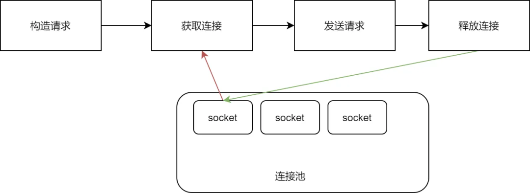 首先回想一下“连接池”的概念。连接池其实就是客户端维护了很多到某个服务的长连接,池里的都是空闲连接,每当要发请求就从池里取一个连接,等使用完再放回连接池。