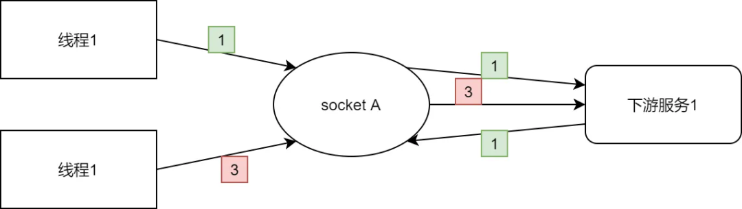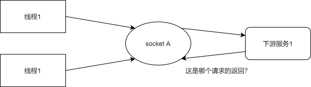 如果多个线程同时用一个连接发送请求,其实客户端发是没问题的,关键是接收返回时,无法确定一个它是对哪个请求的响应。这是最大的问题,所以无奈只能让连接被互斥地使用,保证连接在收到前一个请求的返回前不会发送别的请求。其实包括 http、mysql 在内目前大部分通信协议都是这种单一的 rping-pong 模式,一个请求对一个返回,为了避免频繁 3 次握手,客户端维护多个连接的连接池。