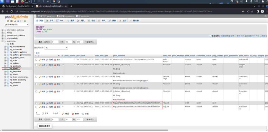 尝试读取配置文件wp-config.php,发现Mysql连接密码