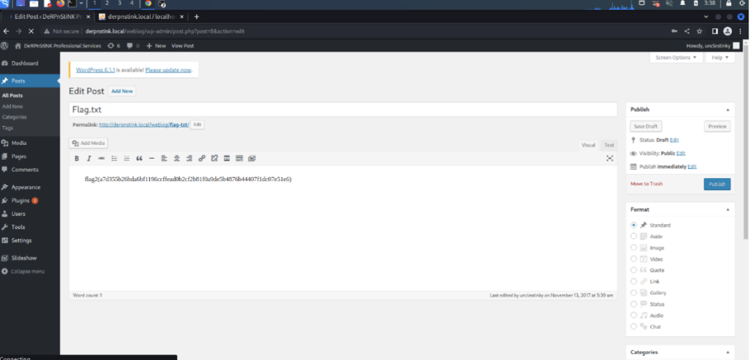 爆破出来的密码为wedgie57尝试使用unclestinky:wedgie57进行登录,也是flag2