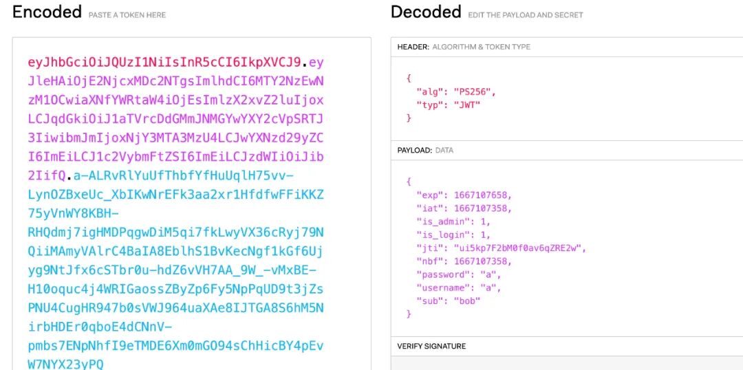 eyJhbGciOiJQUzI1NiIsInR5cCI6IkpXVCJ9.eyJleHAiOjE2NjcxMDc2NTgsImlhdCI6MTY2NzEwNzM1OCwiaXNfYWRtaW4iOjEsImlzX2xvZ2luIjoxLCJqdGkiOiJ1aTVrcDdGMmJNMGYwYXY2cVpSRTJ3IiwibmJmIjoxNjY3MTA3MzU4LCJwYXNzd29yZCI6ImEiLCJ1c2VybmFtZSI6ImEiLCJzdWIiOiJib2IifQ.a-ALRvRlYuUfThbfYfHuUqlH75vv-LynOZBxeUc_XbIKwNrEFk3aa2xr1HfdfwFFiKKZ75yVnWY8KBH-RHQdmj7igHMDPqgwDiM5qi7fkLwyVX36cRyj79NQiiMAmyVAlrC4BaIA8EblhS1BvKecNgf1kGf6Ujyg9NtJfx6cSTbr0u-hdZ6vVH7AA_9W_-vMxBE-H10oquc4j4WRIGaossZByZp6Fy5NpPqUD9t3jZsPNU4CugHR947b0sVWJ964uaXAe8IJTGA8S6hM5NirbHDEr0qboE4dCNnV-pmbs7ENpNhfI9eTMDE6Xm0mGO94sChHicBY4pEvW7NYX23yPQ