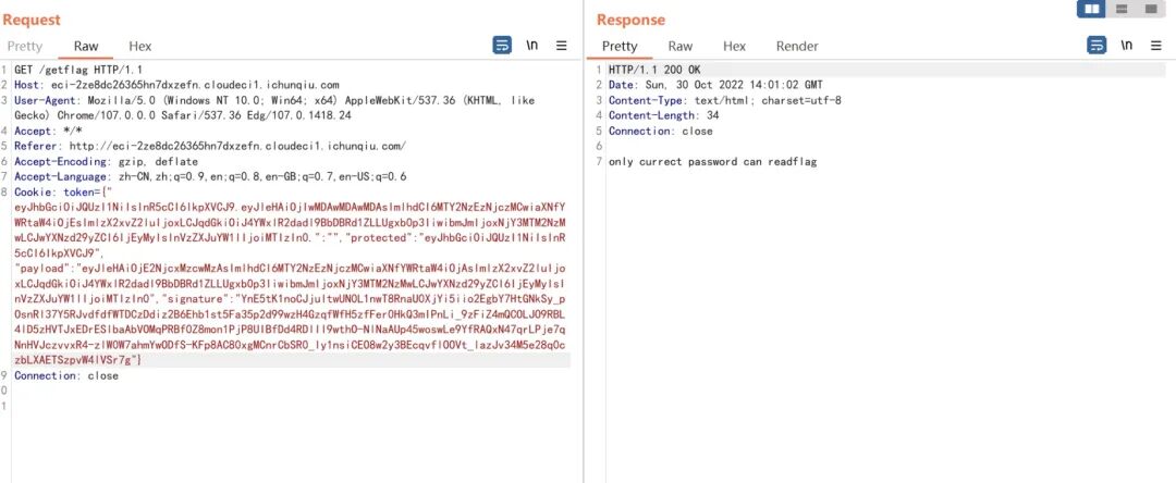 “Get Out Hacker!!!”字样,说明后端有做攻击检测。结合之前回包的“这里是你的信息:???Why there is No Message for you?” 通过substr+loadfile函数,获取/flag文件中内容,构造python利用脚本如下:import jwt