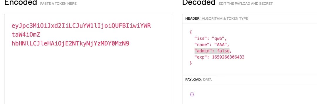 eyJpc3MiOiJxd2IiLCJuYW1lIjoiQUFBIiwiYWRtaW4iOmZ hbHNlLCJleHAiOjE2NTkyNjYzMDY0MzN9