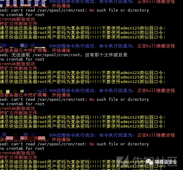 因为后续发现了挖矿程序内网扩散攻击成功的列表,所以最后使用批量下发脚本的程序去删除所有的挖矿程序,效果非常好,到第二天只剩下一台告警了。