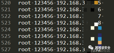 下图为挖矿程序遗留的内网暴力破解成功的用户密码表。