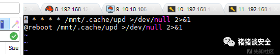 为了彻底删除挖矿脚本,我们就要知道这个挖矿程序都干了什么事情。我先排查了定时任务,crontab -e编辑定时任务,刚发现挖矿程序在/mnt/.bash,所以又去看了另外一台服务器发现了/mnt/.cache所以可以确定这个定时任务就是挖矿病毒留下来的。
