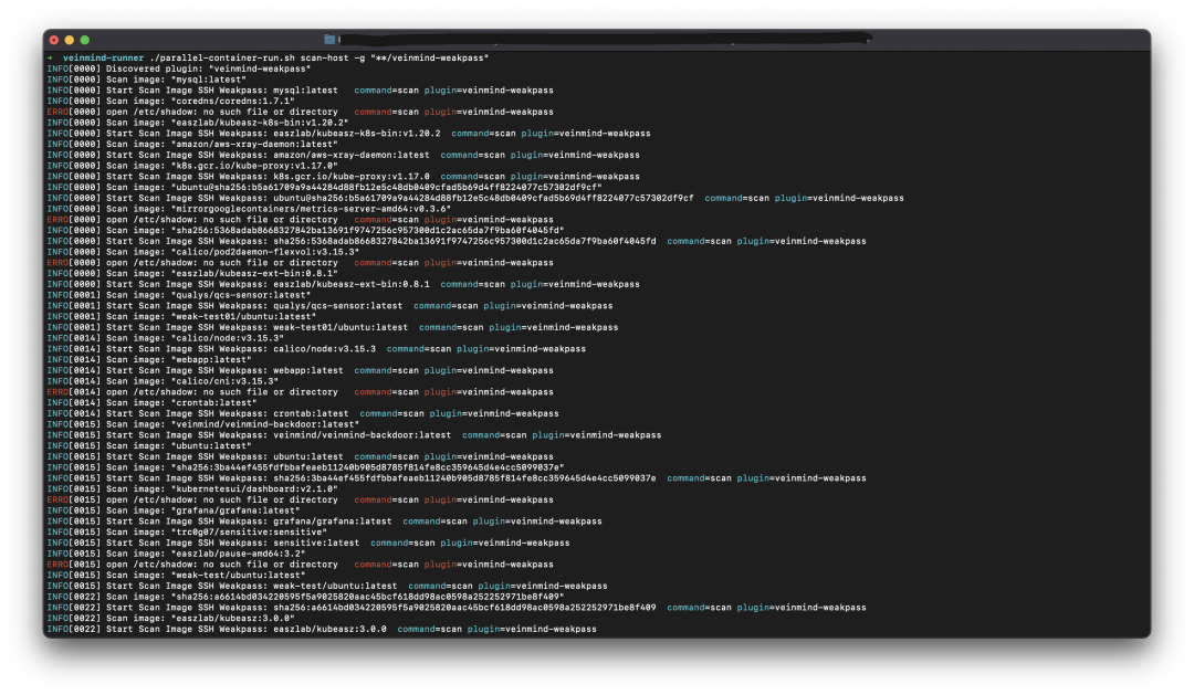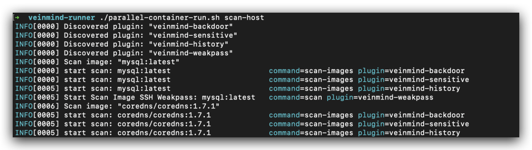 ./parallel-container-run.sh scan-host ,使用所有已识别插件扫描本地所有镜像