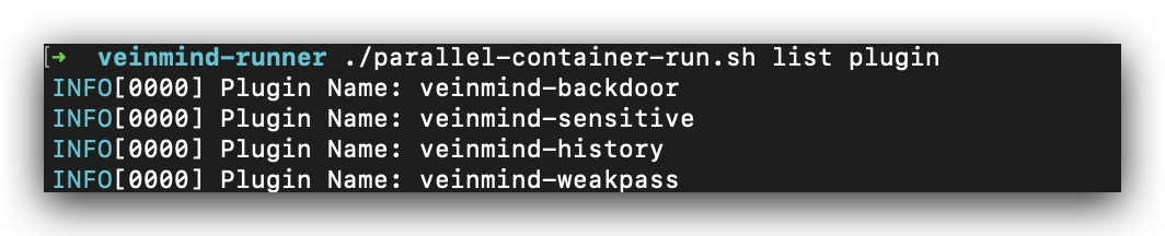 ./parallel-container-run.sh scan-host -g "**/veinmind-weakpass" ,指定只使用弱口令插件扫描