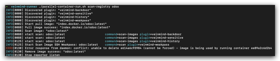 ./parallel-container-run.sh scan-registry oodo ,试试扫描 docker hub 公开仓库中的 oodo 镜像