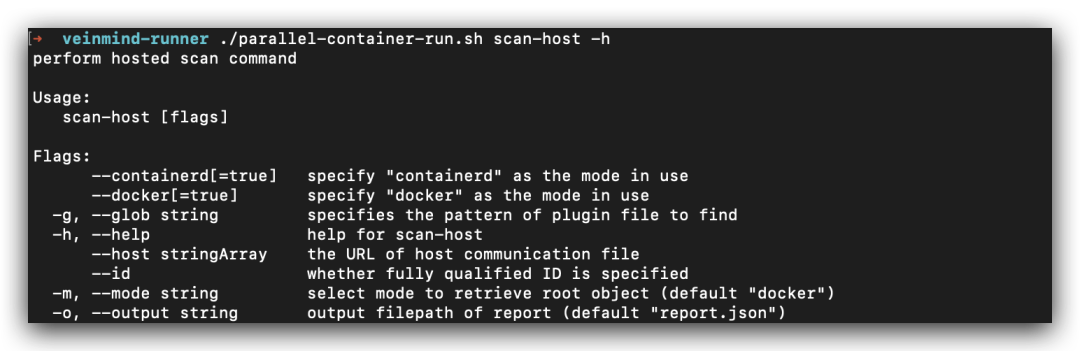 ./parallel-container-run.sh scan-host -h ,查看扫描本地镜像命令参数