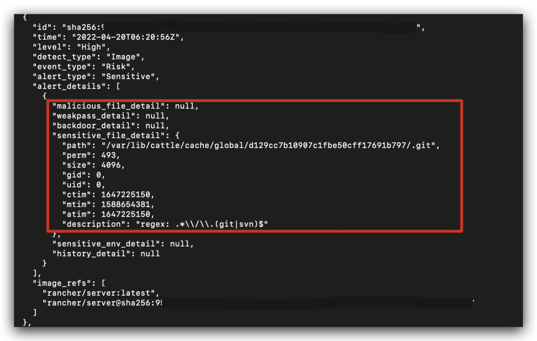 发现其中一个高危的敏感信息,输出检测详情