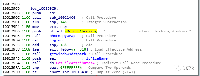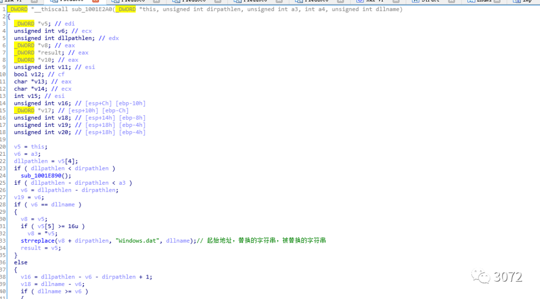 通过栈回溯定位到异常产生的函数,分析发现该函数有路径字符串替换的功能,这里意识到样本的启动与路径有关。