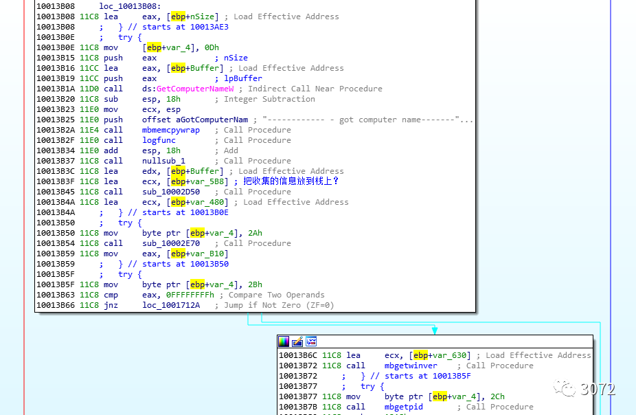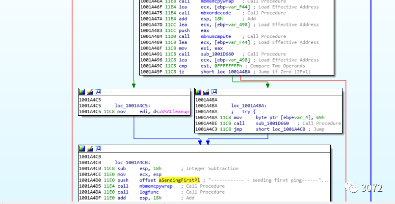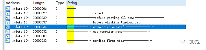大致的逻辑是获取dll name,获取计算机名,发送ping包等(在分析的过程中发现还有一些操作没有通过log函数记录,不过这也不影响我们分析其流量特征了)
