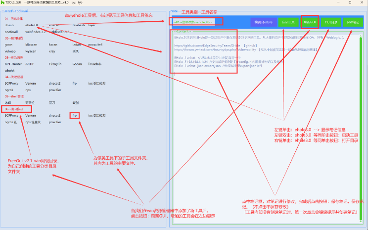 FreeGui:基于ttkbootstrap开发的一款windows渗透测试工具管理框架。你可以用来动态管理自己的工具,框架内部提供了笔记备忘,一键启动,直达目录等实用功能。