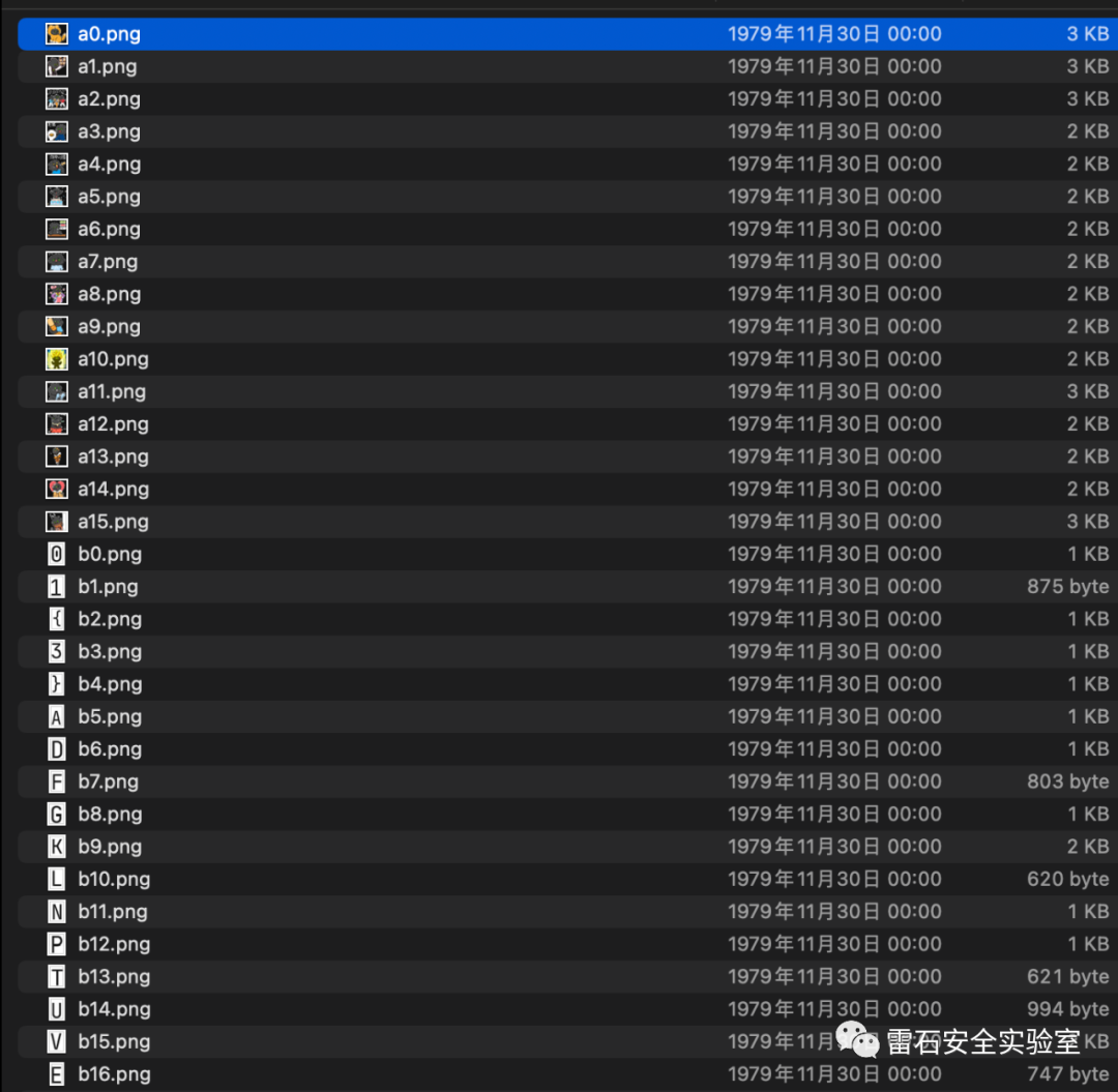 这里我解压,找了下apk中的资源,找到了所有刷新时生成的方块图片资源(不同方法加载前缀a或b的png,其中bx.png是用来生成flag的图片):
