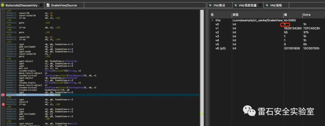 根据上面分析的位置,在判断是否大于55的地方下断点,用jeb进行动态调试。
