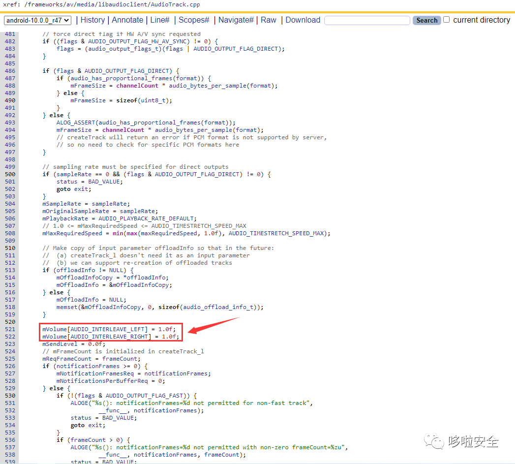 在播放某音源档时,在AudioTrack::set()函数里,先将音源数据的左右声道的Volume设置为1.0,即为最大声。而通过音量按键或则在VolumePanel中调节音量则是在最大音量基础上做衰减操作