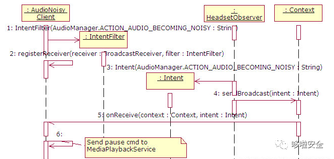 HeadsetObserver一直在监视耳机状态的变化。检测到耳机被拔出之后,发出广播AudioManager.ACTION_AUDIO_BECOMING_NOISY