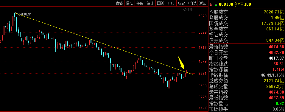 通过上面能明显看到,上证指数的周线和沪深300的周线已经明显突破,这就是趋势,趋势已经形成后,短期不会轻易结束。