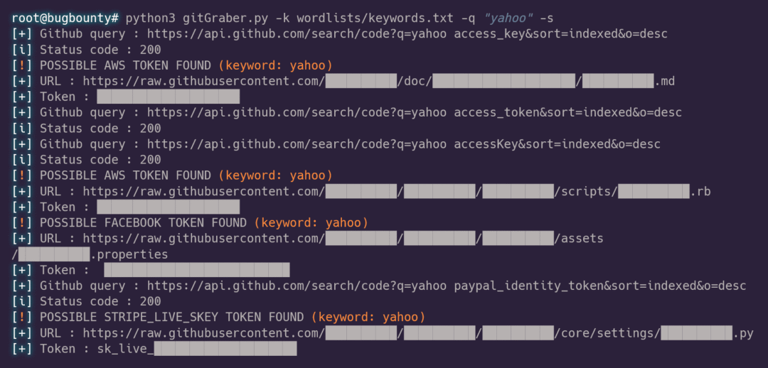 python3 gitGraber.py -k wordlists/keywords.txt -q "uber" -s(4).建议创建一个定期执行脚本的cron