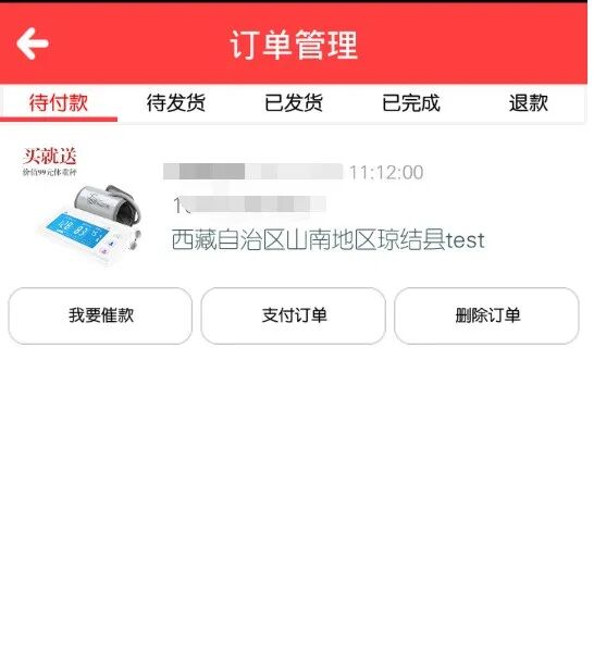 (1)现在该购物APP下一个订单,点订单管理查看订单
