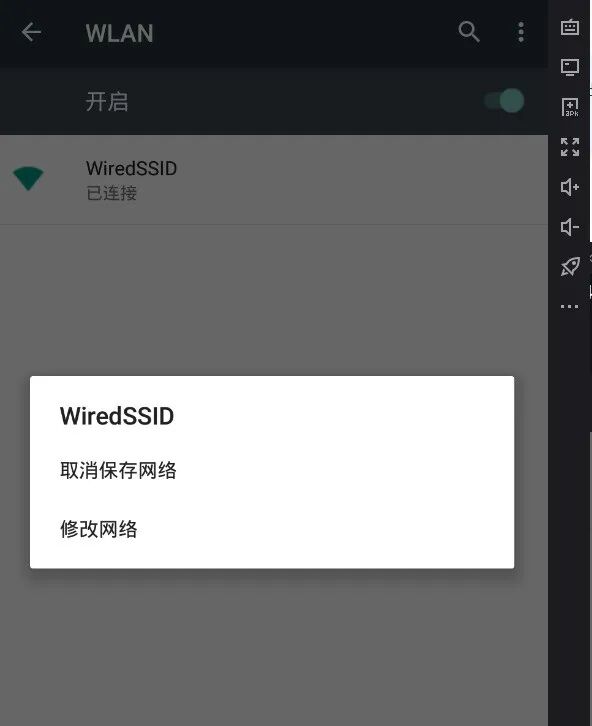 2、在模拟器中打开设置界面中的WLAN菜单,长按弹出,点击修改网络