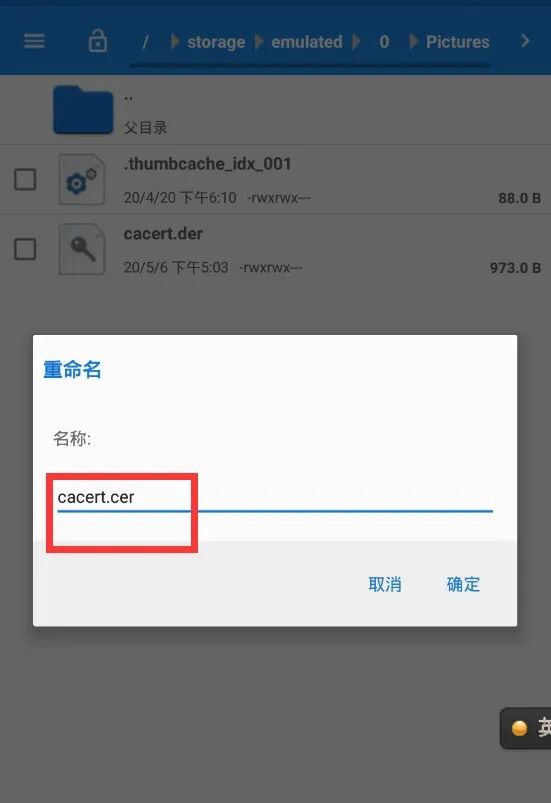 5、将下载好证书的后缀名der改为cer,这样才能安装
