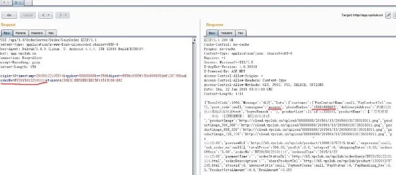 我们在burp中修改订单号为:1月17日的899单(BV20150117100899)