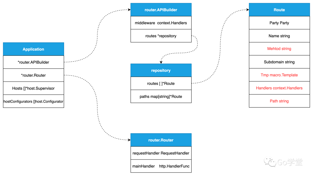 router.APIBuilder和 router.Router。那我们接着再分别看下这两个结构体的主要构成。