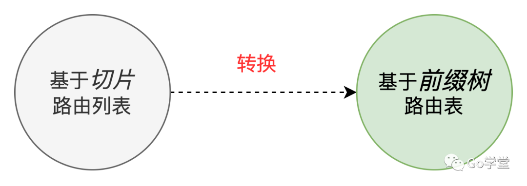 为了提高路由的匹配效率,大多数框架都基于前缀树结构构建的路由表。iris框架也不例外。但是,iris框架是在服务启动阶段才对已注册的路由进行转换的,即在iris.Run函数中。