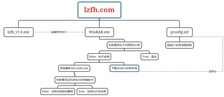 分析lzfh_v2.0.exe恶意文件执行流程如下: