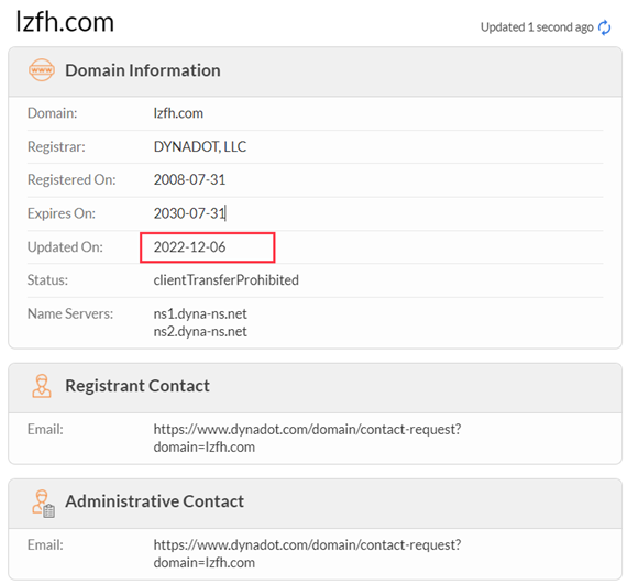 lzfh.com域名信息更新时间是2022年12月6日,与WinRAR.exe编译时间(2022-12-10 08:13:28)相吻合,推测攻击者准备这次攻击事件段应该是2022年12月份左右。
