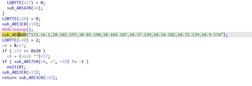 (1)根据受害主机IP 内网C段来判断是否执行后续操作,如该主机IP不属于下图中C段范围的话就执行安装功能,推测是检测沙箱;