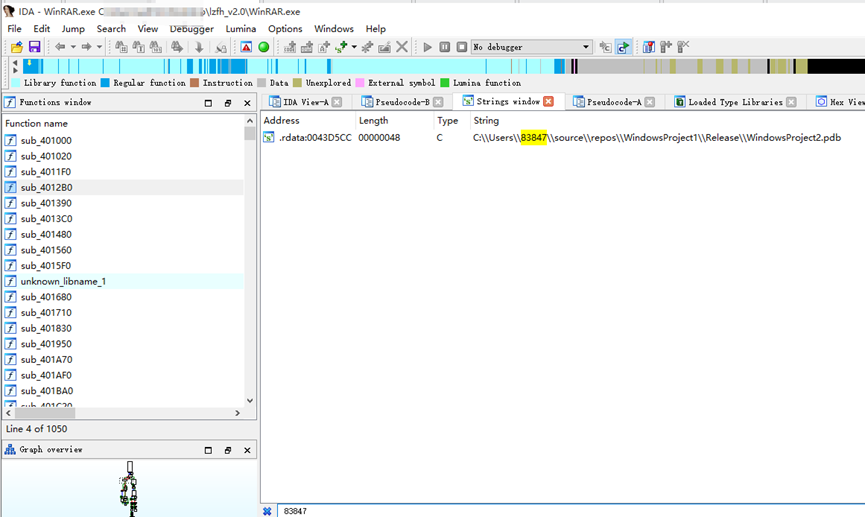 WinRAR.exe木马的编译路径(攻击者电脑路径)为:C:\\Users\\83847\\source\\repos\\WindowsProject1\\Release\\WindowsProject2.pdb。