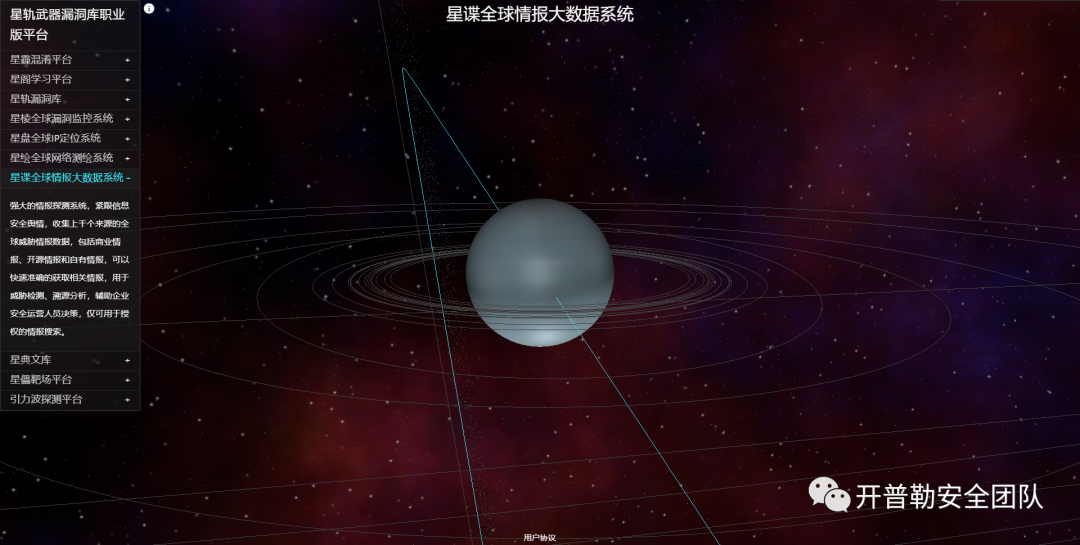 星轨武器漏洞库职业版平台(含星霾混淆平台、星阁学习平台、星轨漏洞库、星棱全球漏洞监控系统、星盘全球IP定位系统、星绘全球资产探测系统、星谍全球情报大数据系统、星典文库、星儡靶场平台、引力波探测平台等)以下简称本平台,欢迎您使用!