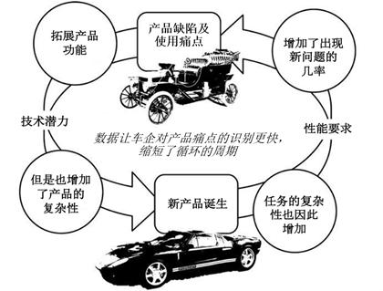 汽车功能与消费者需求间的复杂性自我强化循环(Self-reinforcing complexity cycle)因为数据的加入不断提速,车企对市场的反应将更直观、更敏感,整车开发周期将不断被缩短。