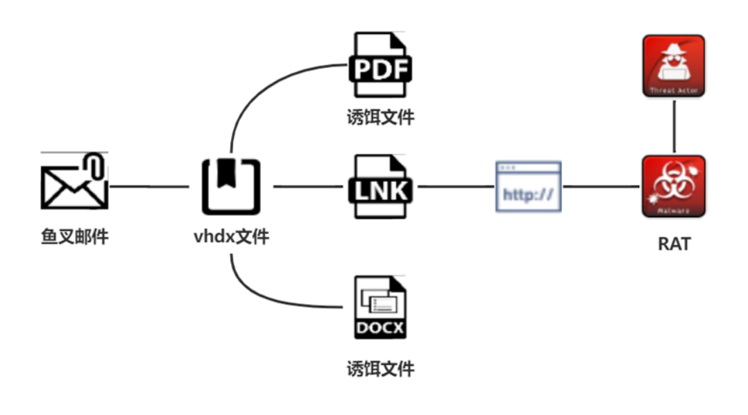 APT组织通常会使用一些不常见的文件类型来承载恶意代码,以提高针对杀毒软件的免杀概率,比如近年来我们监测到被滥用的光盘映像文件(.iso)和虚拟硬盘文件(.vhd),使用这两种格式的文件可以有效的规避MOTW机制。
