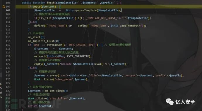 而后检验使用的是否是PHP原生模板,系统配置的默认引擎是Think,所以这里走else