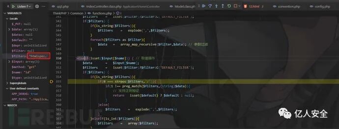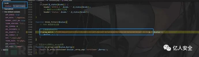 这里需要说明一下,之所以不用I方法,是因为I方法中存在过滤,即think_filter函数,其内容如下