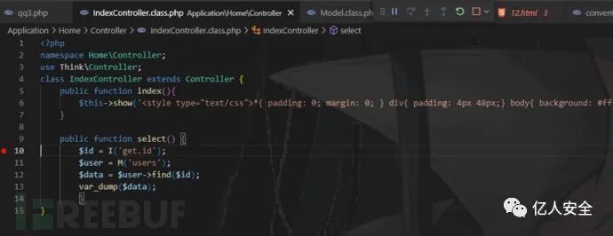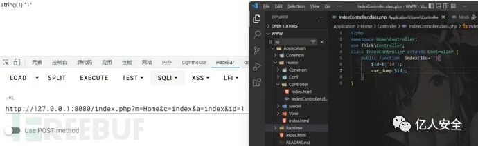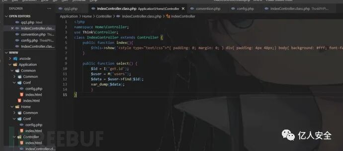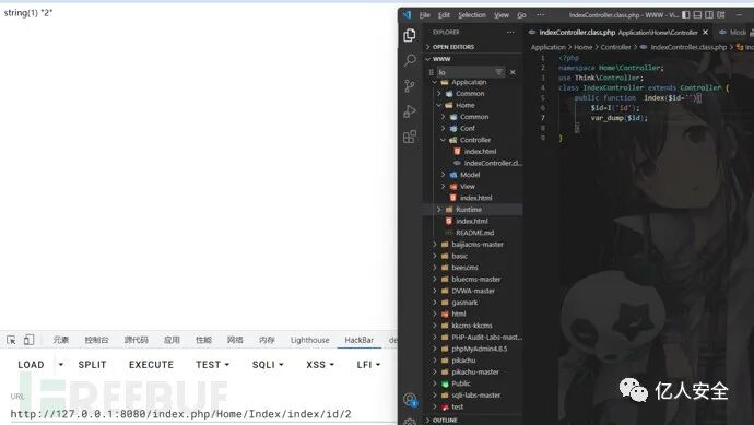 环境配置,我们首先需要在\Application\Home\Controller\新建一个文件,用之前SQL注入的亦可,这里就用之前的了,修改文件内容如下