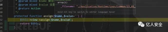 首先来到这个assign函数,这里的name是数组,其内容为我们的日志文件,可以看到这个函数里用了另一个assign函数来处理变量,跟进