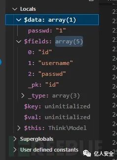 因为$data中的passwd在fields中,所以走下面,即elseif那里