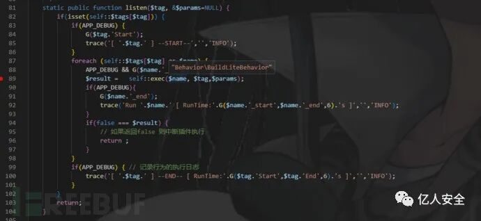 这里可以看到将$this->tVar的值赋给了$params,而后进入了listen函数,跟进此函数