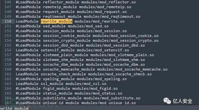 首先打开"phpStudy\PHPTutorial\Apache\conf\httpd.conf"文件,搜索rewrite_module将其前面的#删去